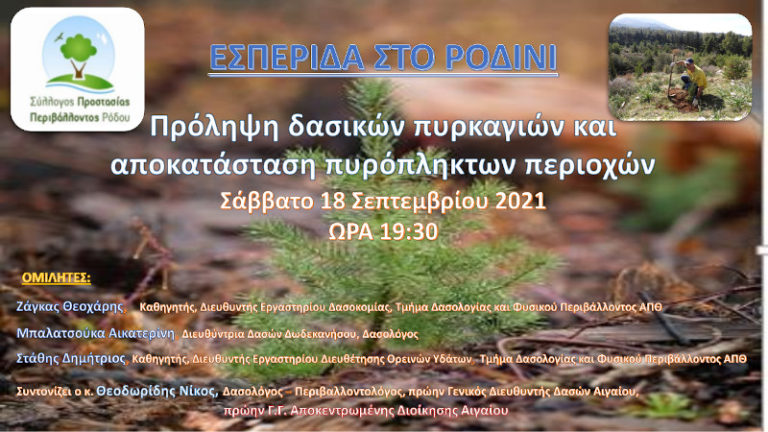 Διοργάνωση επιστημονικής εσπερίδας: “Πρόληψη Δασικών Πυρκαγιών και Αποκατάσταση Πυρόπληκτων Περιοχών”