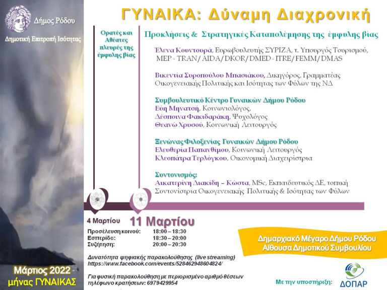 Συνεχίζονται οι εκδηλώσεις του Μάρτιος 2022 μήνας Γυναίκας