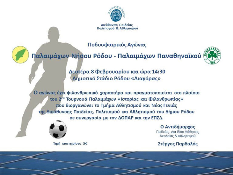 Αγώνα φιλανθρωπικού χαρακτήρα θα δώσουν οι παλαίμαχοι Νήσου Ρόδου και ΠαναθηναΪκού