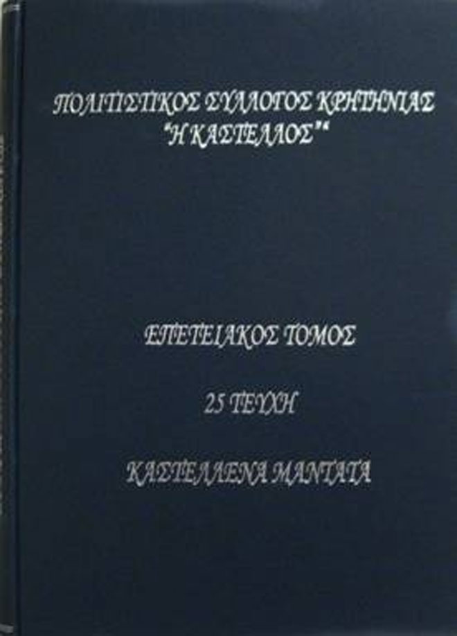 «ΚΑΣΤΕΛΛΕΝΑ ΜΑΝΤΑΤΑ» Επετειακός τόμος της εφημερίδας του Πολιτιστικού Συλλόγου Κρητηνίας