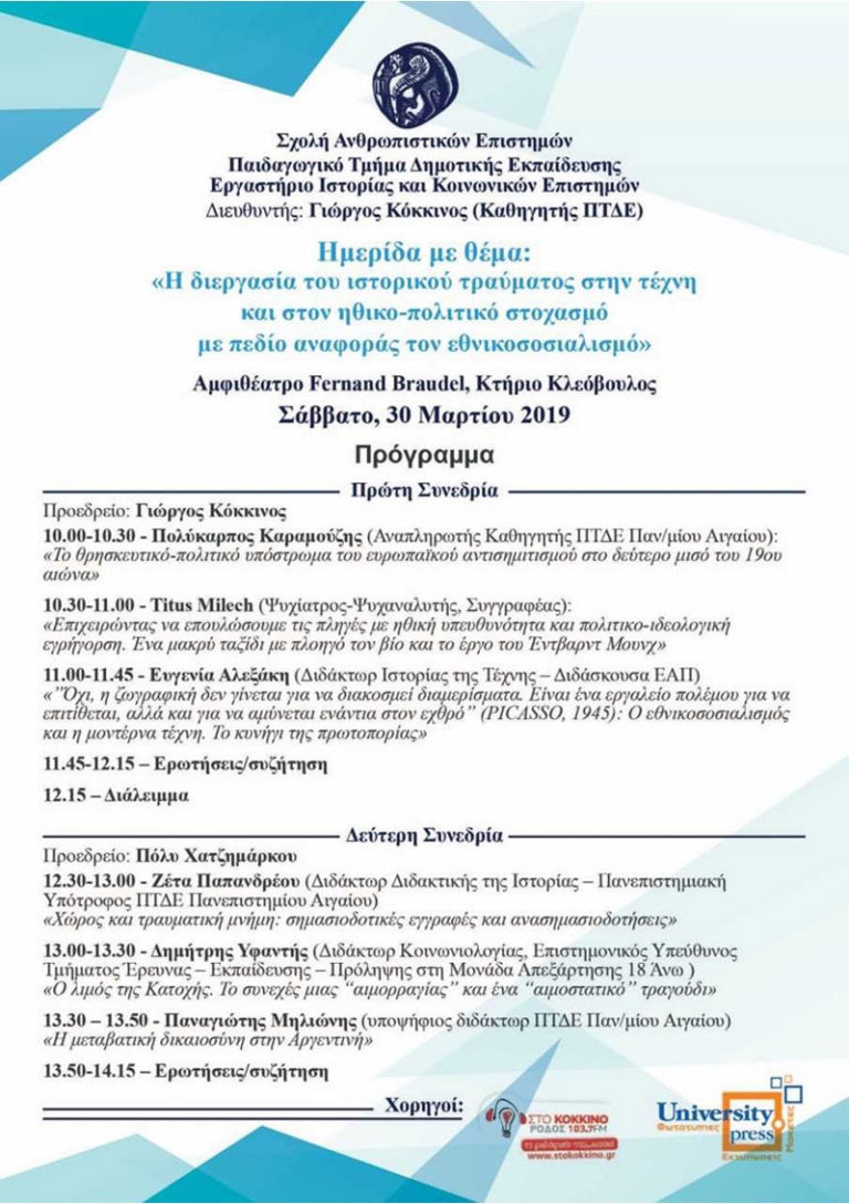 Πρόσκληση σε Ημερίδα: “Η διεργασία του ιστορικού τραύματος στην τέχνη και στον ηθικο-πολιτικό στοχασμό με πεδίο αναφοράς τον εθνικοσοσιαλισμό”