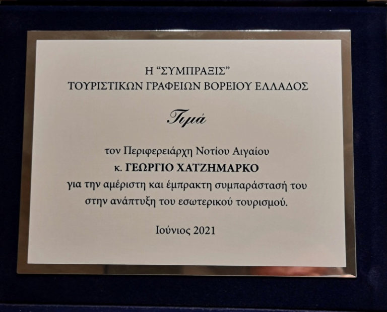 Για τη συμβολή του στη ανάπτυξη του εσωτερικού τουρισμού από την Μακεδονία, τιμήθηκε ο Περιφερειάρχης από τους τουριστικούς πράκτορες της Βορείου Ελλάδος