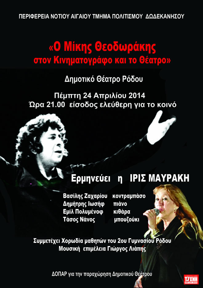 «Ο Μίκης Θεοδωράκης στον Κινηματογράφο και το Θέατρο» – Συναυλία με την Ίριδα Μαυράκη