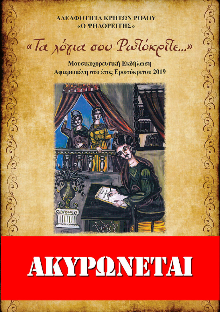 Ακυρώνεται η εκδήλωση – αφιέρωμα στον Ερωτόκριτο λόγω κορονωιού