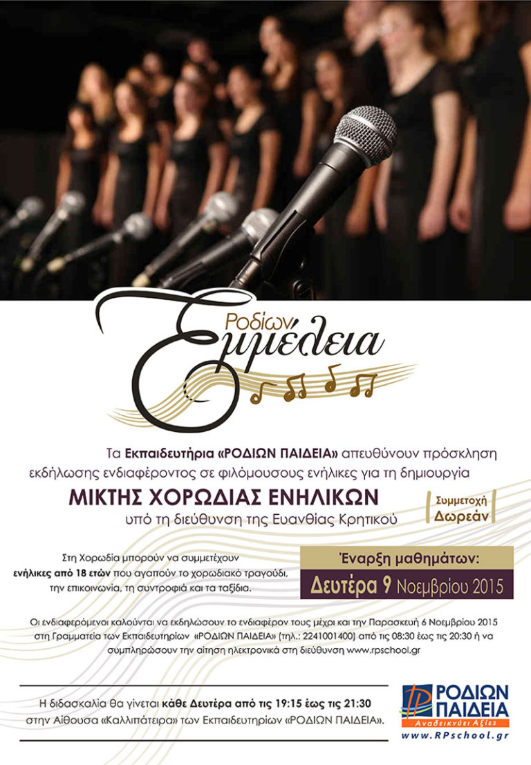 Χορωδία «Ροδίων Εμμέλεια», μια χορωδία ενηλίκων από τα Εκπαιδευτήρια «ΡΟΔΙΩΝ ΠΑΙΔΕΙΑ»