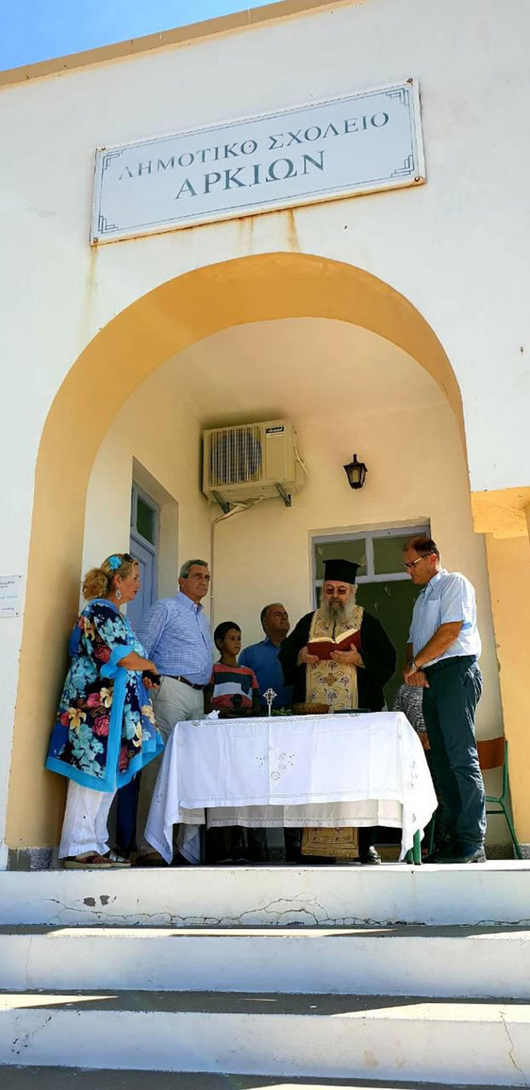 Δίπλα στον μοναδικό μαθητή του σχολείου των Αρκιών, ο Περιφερειάρχης Νοτίου Αιγαίου, Γιώργος Χατζημάρκος