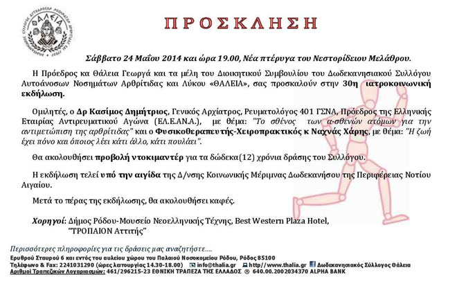 30η ιατροκοινωνική εκδήλωση από το Δωδεκανησιακό Σύλλογο «ΘΑΛΕΙΑ»