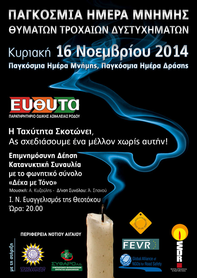 16 Νοεμβρίου 2014: 3η Κυριακή του Νοέμβρη Παγκόσμια Ημέρα Μνήμης Θυμάτων Τροχαίων Δυστυχημάτων