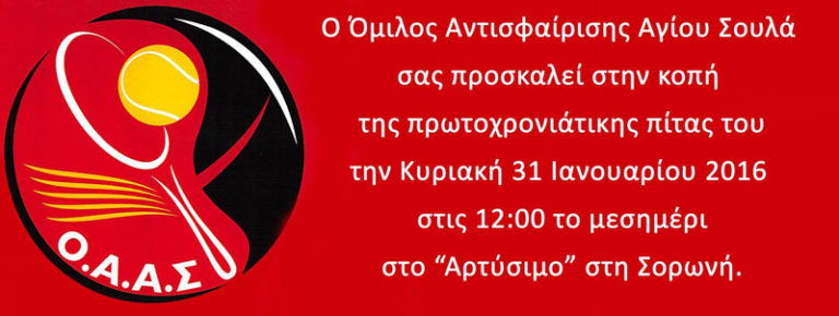 Ο Όμιλος Αντισφαίρισης Αγίου Σουλά κόβει την πίτα του