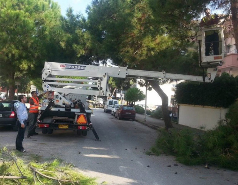 Εργασίες κλαδέματος και καλλωπισμού παρτεριών σε γειτονιές της πόλης της Ρόδου